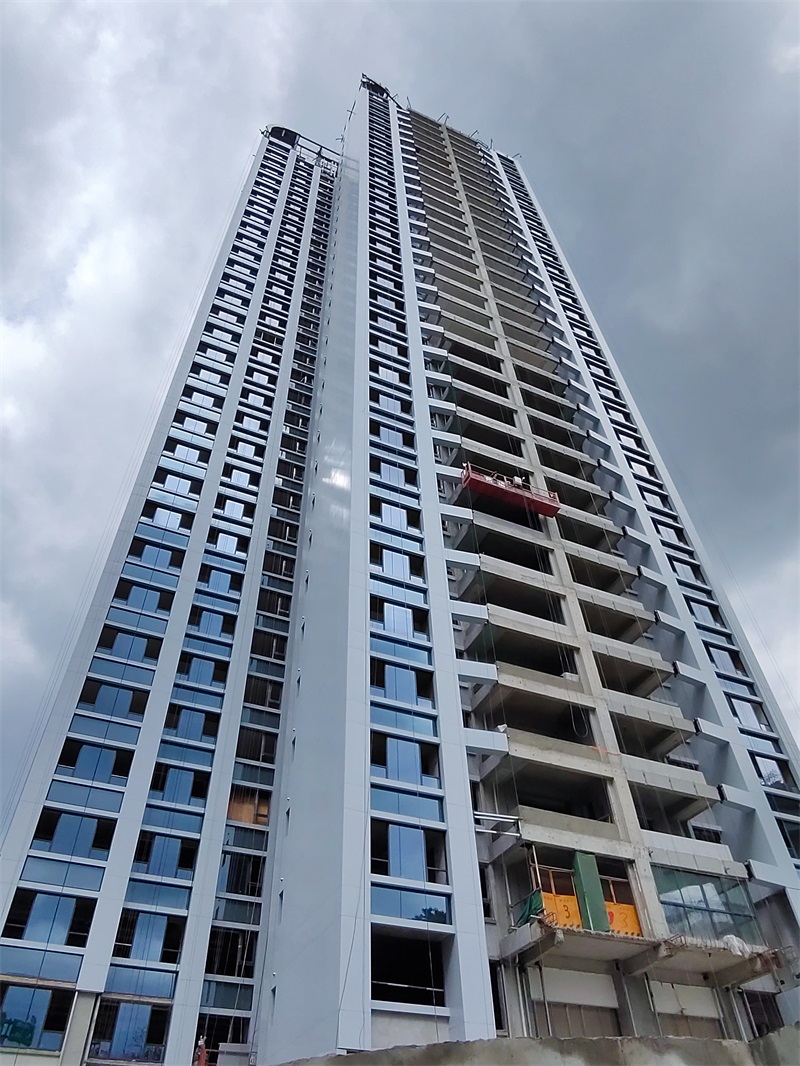 大英县文旅产业园安置房及教育配套设施建设项目工程地址: 四川省遂宁市大英县蓬莱镇总包单位: 中国核工业中原建设有限公司幕墙面积: 45000平方米暂定合同价: 2591万幕墙类型: 玻璃幕墙、铝板幕墙、陶板幕墙、采光顶工程概况: 建筑高度118米,建筑层数为: 地上33层
